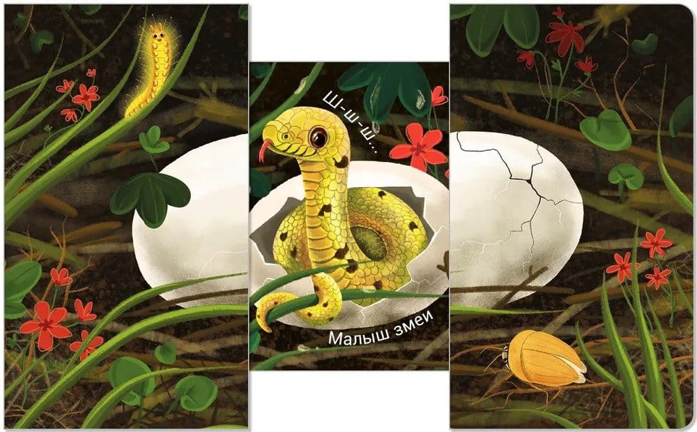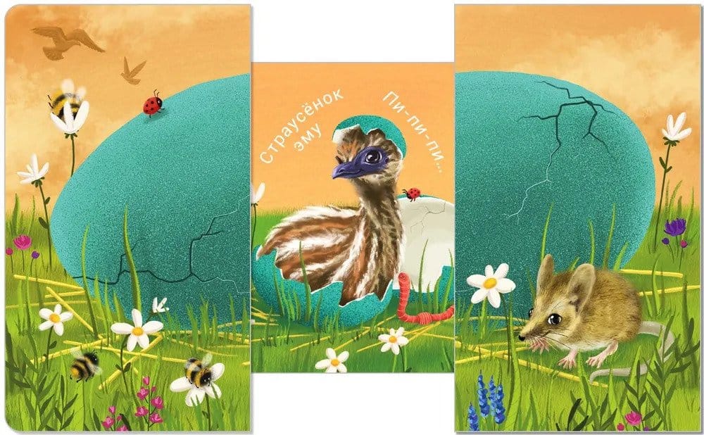 Раздвижная книжка-картонка познакомит вашего малыша с животными, которые вылупляются из яиц. Они самые разные и удивительные: черепашка, пингвин, цыплёнок и даже динозавр!