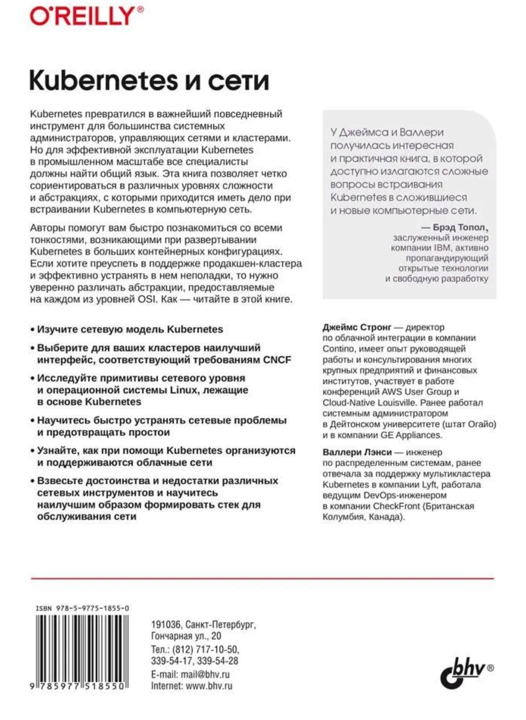 Книга посвящена интеграции Kubernetes в готовые компьютерные сети. Рассмотрено, как оркестратор Kubernetes вписывается в сетевую модель OSI. Раскрыты вопросы интеграции сетей предприятия с облачными мощностями и контейнерными архитектурами. Рассмотрены ключевые факторы и новые зоны ответственности, возникающие при взаимодействии Kubernetes с каждым из уровней модели OSI. Приведены примеры быстрого масштабирования нагрузок, рассказано, как обеспечивать целостность данных и высокую отказоустойчивость, при активном применении современной виртуализации и при передаче больших объёмов данных по сети.