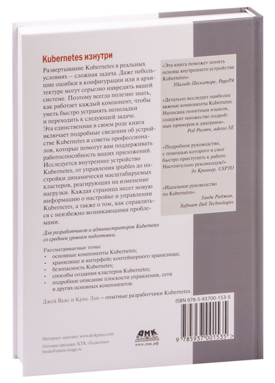 Развертывание Kubernetes в реальных условиях – сложная задача. Даже небольшие ошибки в конфигурации или в архитектуре могут серьезно навредить вашей системе. Поэтому всегда полезно знать, как работает каждый компонент, чтобы уметь быстро устранять неполадки и переходить к следующей задаче. Эта единственная в своем роде книга включает подробные сведения об устройстве Kubernetes и советы профессионалов, которые помогут вам поддерживать работоспособность ваших приложений. Исследуется внутреннее устройство Kubernetes, от управления iptables до настройки динамически масштабируемых кластеров, реагирующих на изменение нагрузки. Каждая страница несет новую информацию о настройке и управлении Kubernetes, а также о том, как справляться с неизбежно возникающими проблемами.
