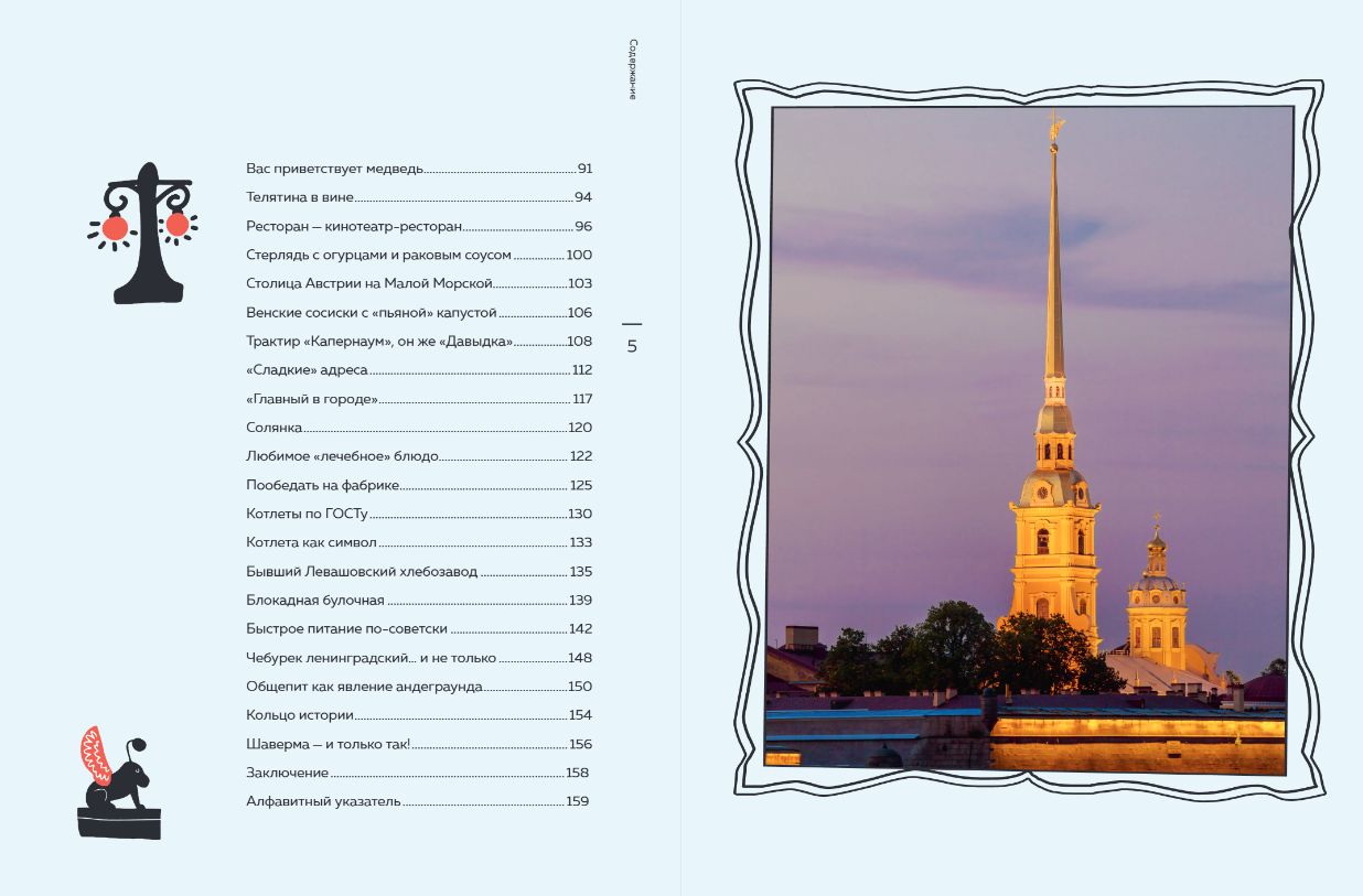 Мы узнаем, какие из ресторанов исчезли, а какие возродились, по каким адресам они обитали и где можно обнаружить их сейчас. Наконец, нам предлагают рецепты истинно питерских блюд: жареную корюшку и расстегайчики, ленинградские солянку и уху, маковые блинчики и чебурек по-ленинградски, котлеты по ГОСТу и шаверму по-питерски.