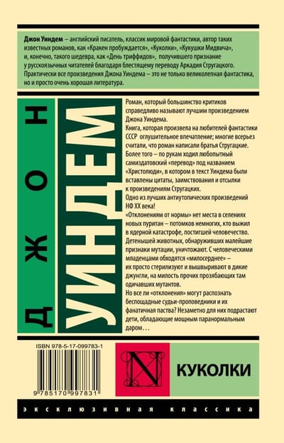 Роман, который большинство критиков справедливо называют лучшим произведением Джона Уиндема. Книга, которая произвела на любителей фантастики СССР оглушительное впечатление; многие всерьез считали, что роман написали братья Стругацкие. Более того - по рукам ходил любопытный самиздатовский «перевод» под названием «Христолюди», в котором в текст Уиндема были вставлены цитаты, заимствования и отсылки к произведениям Стругацких. Одно из лучших антиутопическиих произведений НФ XX века! «Отклонениям от нормы» нет места в селениях новых пуритан - потомков немногих, кто выжил в ядерной катастрофе, постигшей человечество. Детенышей животных, обнаруживших малейшие признаки мутации, уничтожают. С человеческими младенцами обходятся «милосерднее» - их просто стерилизуют и вышвыривают в дикие джунгли, на милость прочих прозябающих там одичавших мутантов. Но все ли «отклонения» могут распознать беспощадные судьи-проповедники и их фанатичная паства? Незаметно для них подрастают дети, обладающие мощным паранормальным даром…