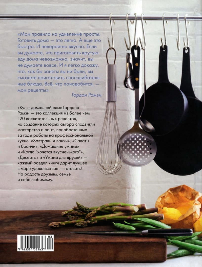«Культ домашней еды» Гордона Рамзи – это коллекция более чем 120 восхитительных новых рецептов, на которые автора вдохновили мастерство и опыт, приобретенные за годы работы на профессиональной кухне. «Завтраки и ланчи», «Салаты и бранчи», «Домашние ужины» и «Когда хочется «вкусненького», «Десерты» и «Ужины для друзей» - каждый раздел книги дарит лучшее в мире удовольствие – готовить – на радость друзьям, семье и себе любимому. Гордон Рамзи – культовый британский шеф, звезда «Адской кухни», автор кулинарных бестселлеров.