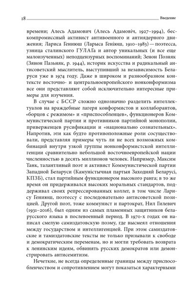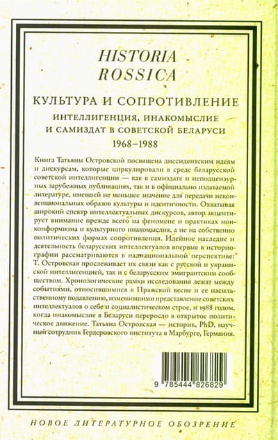 Книга Татьяны Островской посвящена диссидентским идеям и дискурсам, которые циркулировали в среде беларусской советской интеллигенции — как в самиздате и неподцензурных зарубежных публикациях, так и в официально издаваемой литературе, имевшей не меньшее значение для передачи неконвенциональных образов культуры и идентичности. Охватывая широкий спектр интеллектуальных дискурсов, автор акцентирует внимание прежде всего на феномене и практиках нонконформизма и культурного инакомыслия, а не на собственно политических формах сопротивления. Идейное наследие и деятельность беларусских интеллектуалов впервые в историографии рассматриваются в наднациональной перспективе: Т. Островская прослеживает их связи как с русской и украинской интеллигенцией, так и с беларусским эмигрантским сообществом. Хронологические рамки исследования лежат между событиями, относившимися к Пражской весне и ее насильственному подавлению, изменившими представление советских интеллектуалов о себе и социалистическом строе, и 1988 годом, когда инакомыслие в Беларуси переросло в открытое политическое движение. Татьяна Островская — историк, PhD, научный сотрудник Гердеровского института в Марбурге, Германия.