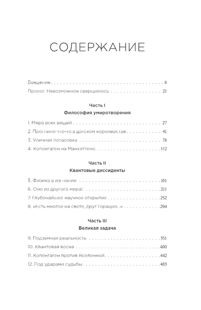 Да, квантовая физика работает. Но игнорировать то, что она рассказывает нам о реальности, значит, делать вид, что мы не замечаем прорехи в нашем понимании мира. Это поражение затрагивает интересы каждого мыслящего обитателя нашего мира, мира, каждый уголок которого преобразован наукой. Поэтому наш рассказ — рассказ о науке как области человеческой деятельности, а значит, не просто о том, как устроена природа, но и о том, как устроены люди.