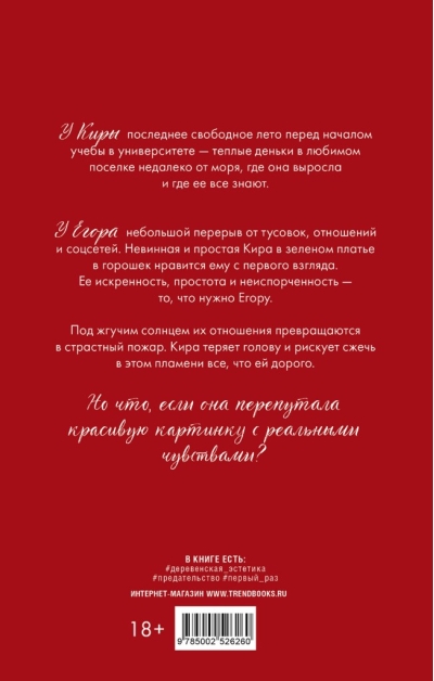 Под жгучим солнцем их отношения превращаются в страстный пожар. Кира теряет голову и рискует сжечь в этом пламени все, что ей дорого. Но что, если она перепутала красивую картинку с реальными чувствами?