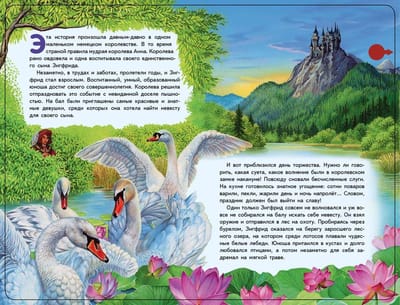 Музыкальная книга-аудиоспектакль «Лебединое озеро» — это сказка о злом волшебнике, превратившем прекрасную принцессу в лебедя. Чтобы спасти её, храброму принцу придётся пройти испытание на верность и отвагу. Текст сказки адаптирован для детей от 2 до 5 лет. Издание выполнено в большом формате, украшено цветной фольгой. Каждая страница — из плотного картона. 10 кнопок, два режима проигрывания аудиоспектакля. Музыкальный модуль работает от двух батареек типа ААА.