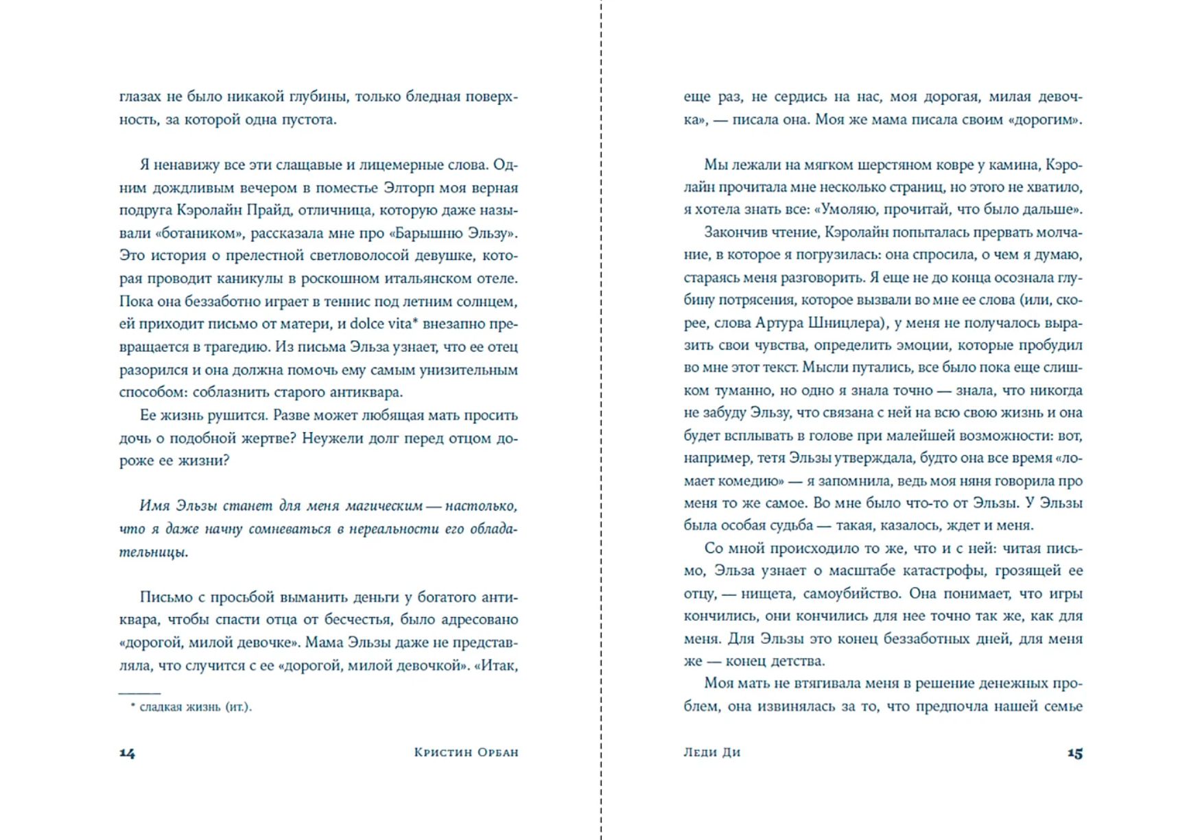 Кристин Орбан рассказывает историю Дианы от первого лица: от травмы после развода родителей до попыток соответствовать статусу «народной принцессы», от всепоглощающей ревности к Камилле до скандального интервью, ставшего причиной окончательного разрыва с королевской семьей. Автор пишет интимный портрет женщины, которая в условиях невероятного давления выбрала независимость и оставила наследие, неизмеримое в каратах и титулах.