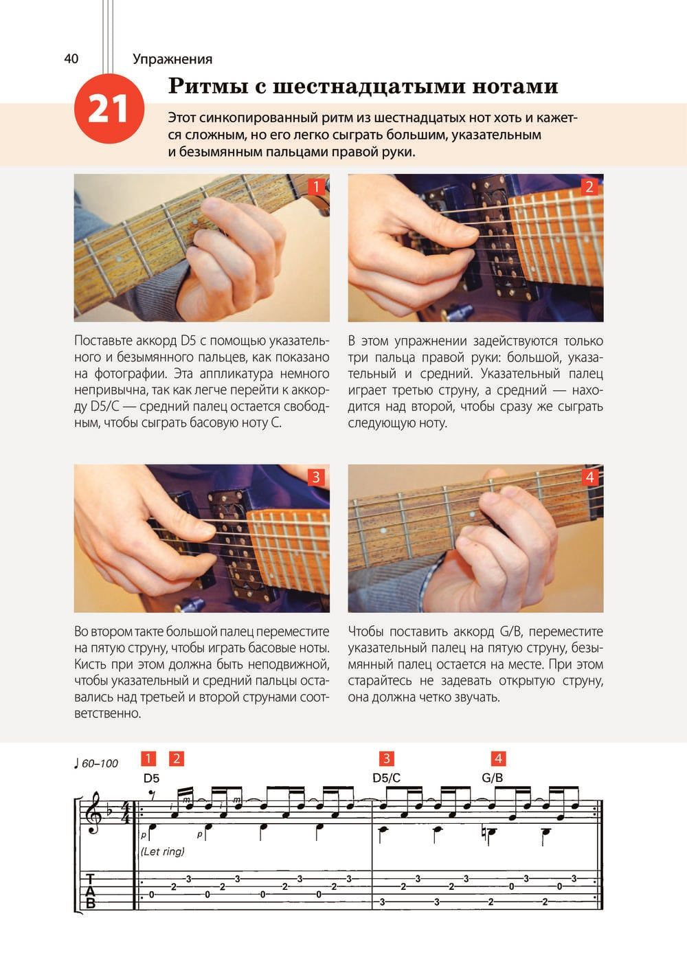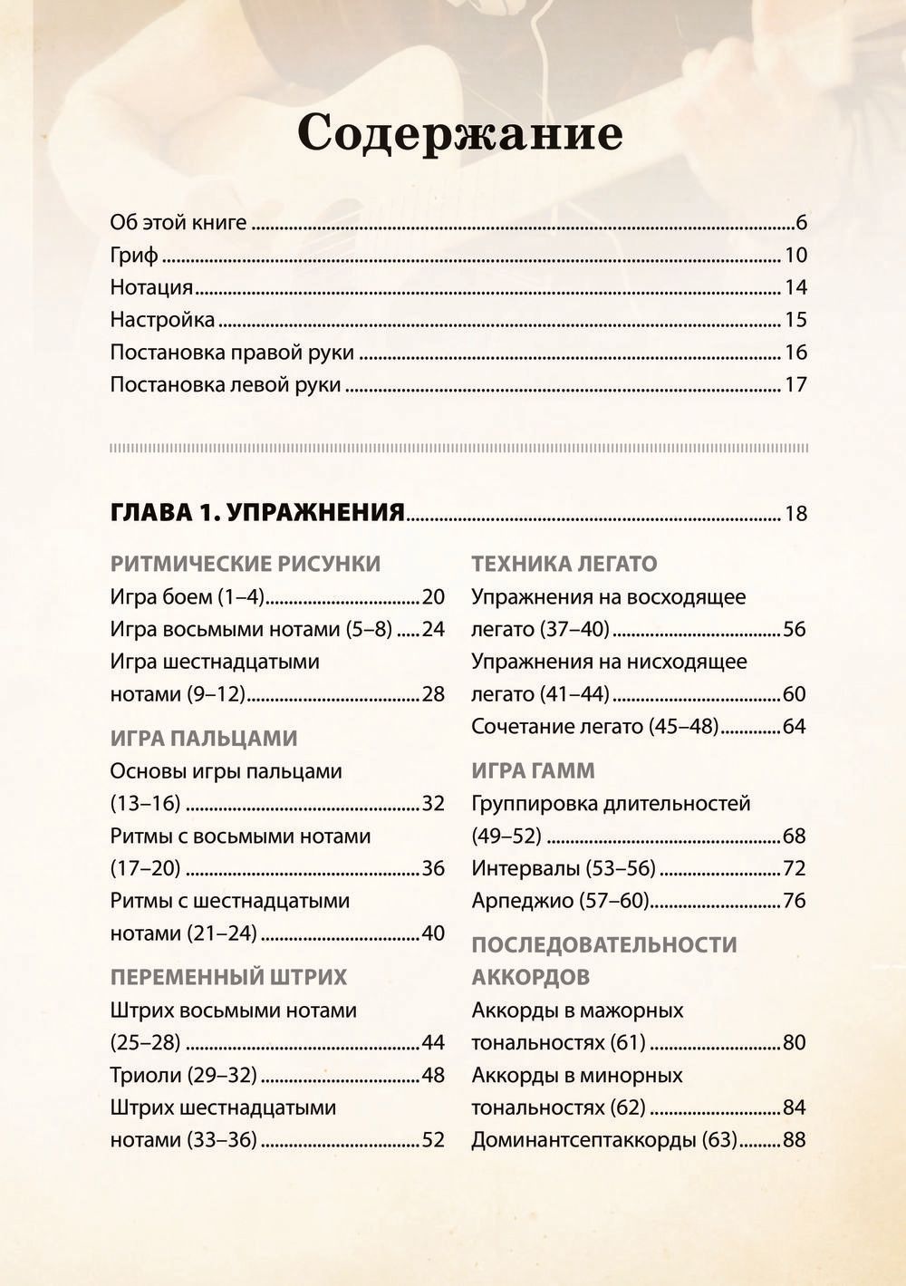 63 пошаговых урока, чтобы научиться профессионально играть на гитаре всего за 10 минут в день! Самоучитель содержит подробные фотографии, письменные пояснения и табулатуры. Комплексы упражнений помогут сосредоточиться на практике и вывести игру на качественно новый уровень. Каждый из них предназначен для развития определенной техники (игра боем, триоли, легато и т.д.) и рассчитан на десять минут. Книга написана простым и доступным языком, а схемы и фотографии помогут вам легко применить теоретические знания на практике.