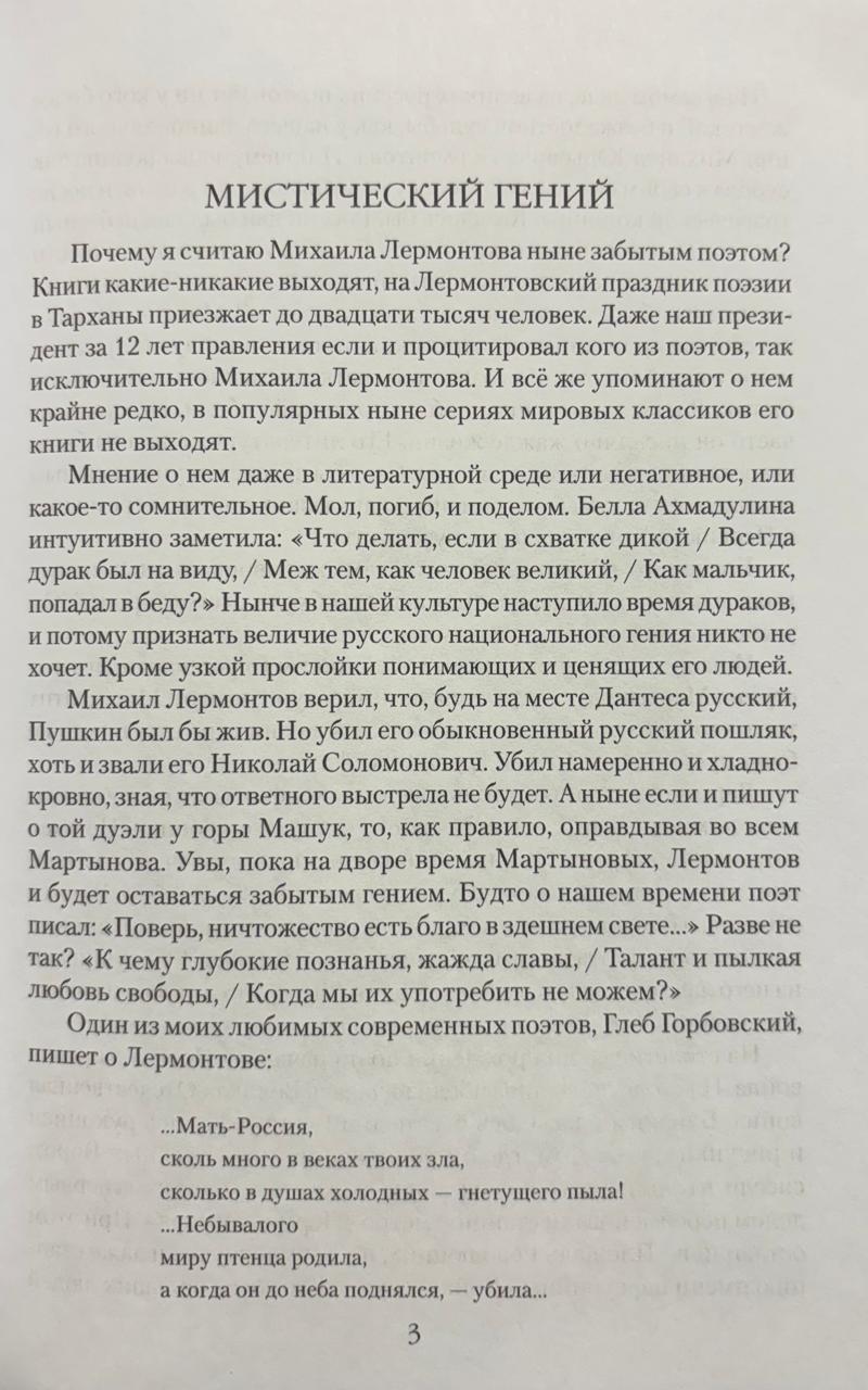 Автор резко выступает против всех мистификаций и сплетен о поэте, для него Лермонтов во всех своих противоречиях, при всей сложности характера — прежде всего величайший национальный русский гений, очень рано осознавший свою трагическую миссию.