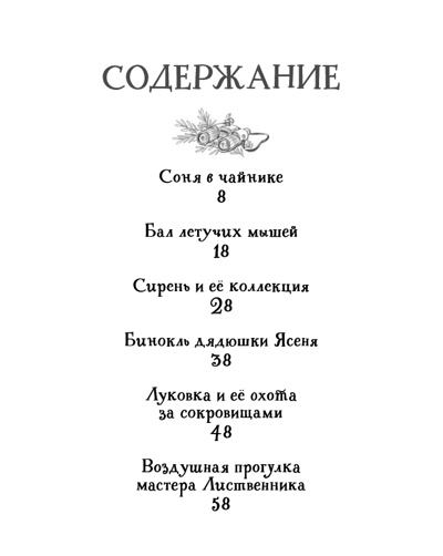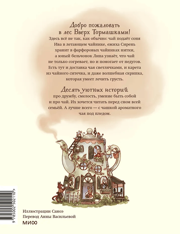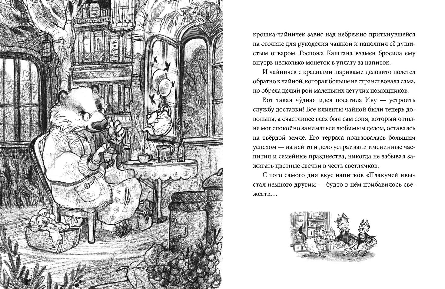 Добро пожаловать в необычный лес Вверх Тормашками: здесь соня Ива подает чай в летающем чайнике, ежиха Сирень хранит в фарфоровых чайниках нитки, а юный бельчонок Липа узнает, что чай не только согревает, но и помогает от недугов. Есть тут и доставка чая светлячками, и карета из чайного ситечка, и даже волшебная скрипка, которая умеет лечить грусть.