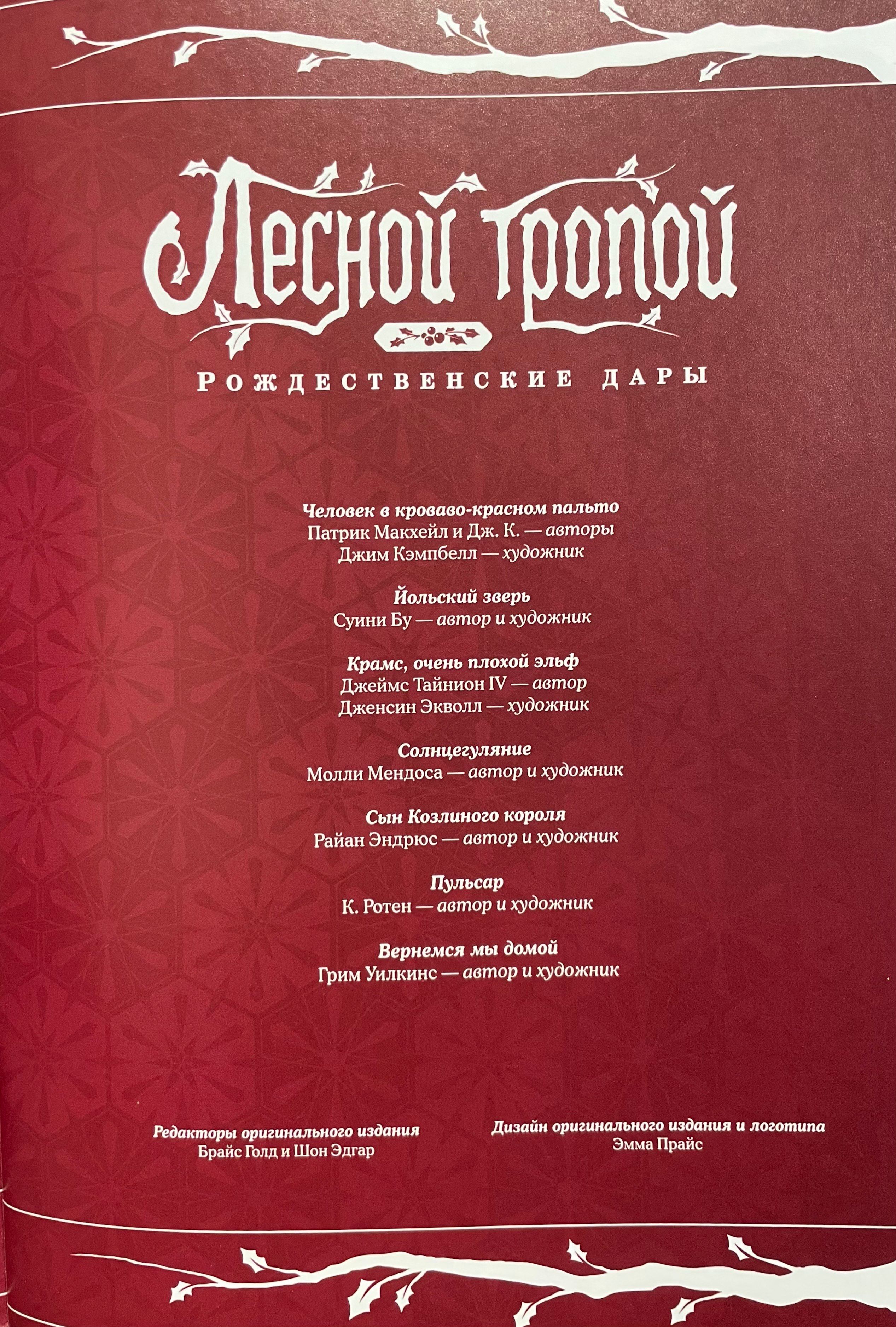 В этот праздничный сборник вошли семь историй — от жутких и загадочных до теплых и уютных. Над комиксами работали такие известные авторы как Патрик Макхейл («По ту сторону изгороди»), Джеймс Тайнион IV («Бэтмен. Detective Comics»), Райан Эндрюс («Мы дали слово»), Суини Бу («Харли Квинн: Девушка в кризисе») и другие.