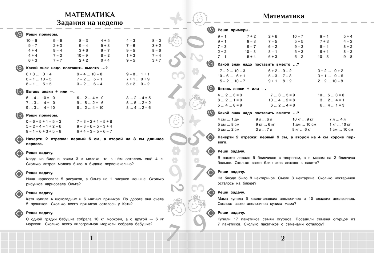 В пособии предлагаются задания на повторение и закрепление материала по всему курсу математики и русского языка для 1 класса.
