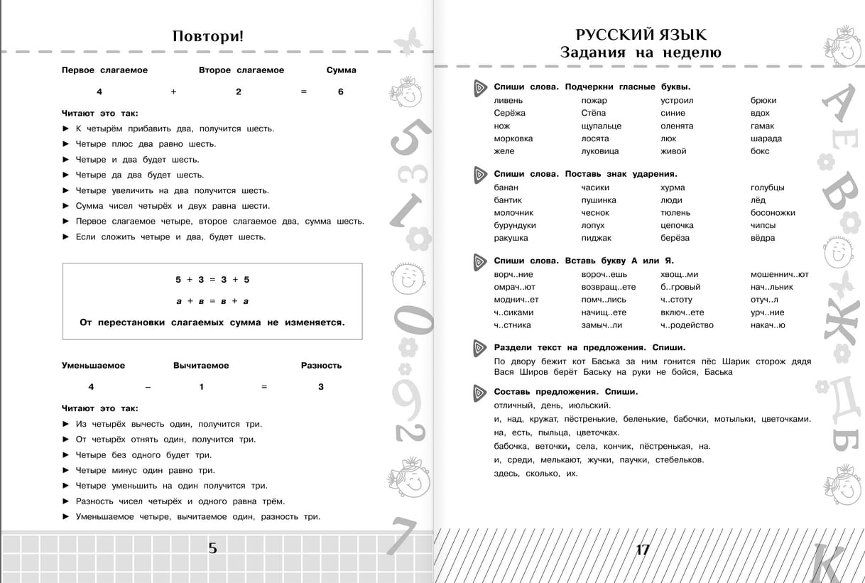 Летние задания по математике и русскому языку для повторения и закрепления учебного материала. 1 класс