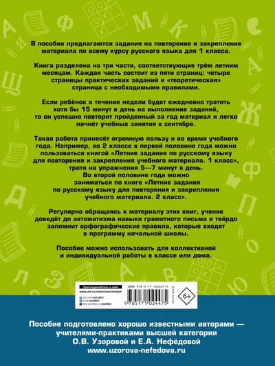 Летние задания по русскому языку для повторения и закрепления учебного материала. 1 класс
