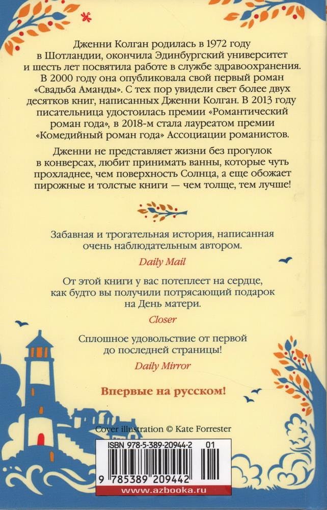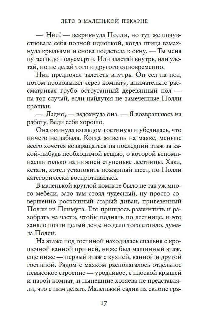 Как можно жить на краю, нет, за краем земли — на приливном островке, продуваемом всеми ветрами? Вдали от больших городов и привычных развлечений? Но такие робинзоны находятся — они приезжают сюда, навсегда влюбляются в Корнуолл и остаются, чтобы жить, работать и быть счастливыми. Одна из них — Полли Уотерфорд, быть может не избалованная везением, однако не зарывшая в землю свой талант: она умеет печь изумительно вкусный хлеб. У нее есть любимая работа, любимый человек и любимый домашний питомец (вообще-то, это морская птица), и все трое живут на маяке (другого жилья на острове не нашлось). Но как это часто бывает, идиллия не длится долго — в маленькой пекарне, где работает Полли, меняется владелец, и ей указывают на дверь. Ведь она совершенно не умеет экономить на качестве продуктов! Обитатели маяка переживают трудные времена и придумывают план спасения. Но чтобы его осуществить, придется расстаться — возможно, надолго. И вот, когда им наконец удается шаг за шагом приблизиться к цели, наступает очень славный, удачный, погожий день, не предвещающий ничего плохого...