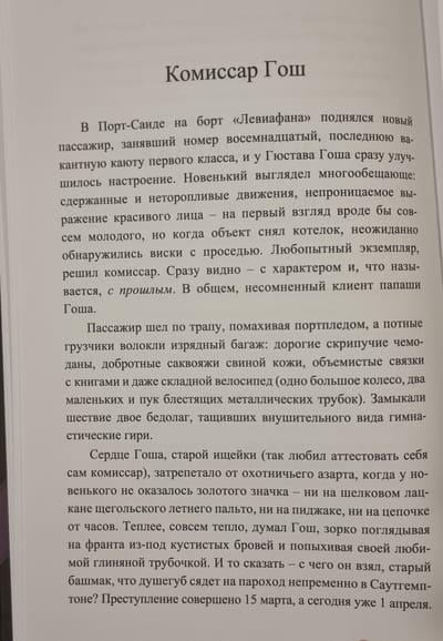 15 марта 1878 года на рю де Гренель в Париже совершено страшное убийство. Убит лорд Литтлби и девять его слуг. Преступник не взял из дома ничего, кроме статуэтки бога Шивы и цветного платка. Расследование приводит комиссара полиции Гоша на роскошный корабль «Левиафан», плывущий в Калькутту. Убийца на корабле, но кто это? Среди подозреваемых, каждый из которых прячет свою тайну, английский аристократ, офицер Японской армии, беременная жена швейцарского банковского служащего и молодой русский дипломат с седыми висками…
