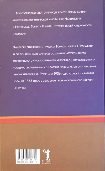 Многовековым спор о природе власти между такими классиками политической мысли, как Макиавелли и Монтескье, Гоббс и Шмитт, не теряет своей актуальности и сегодня. Читателей знаменитого трактата Томаса Гоббса «Левиафан» и по сей день завораживает созданный автором образ исполинского «искусственного человека», могущественного государства-левиафана. Читателю предлагается оригинальная версия перевода А. Гутермана 1936 года, а также - фрагмент издания 1868 года, в свое время конфискованного царской цензурой.