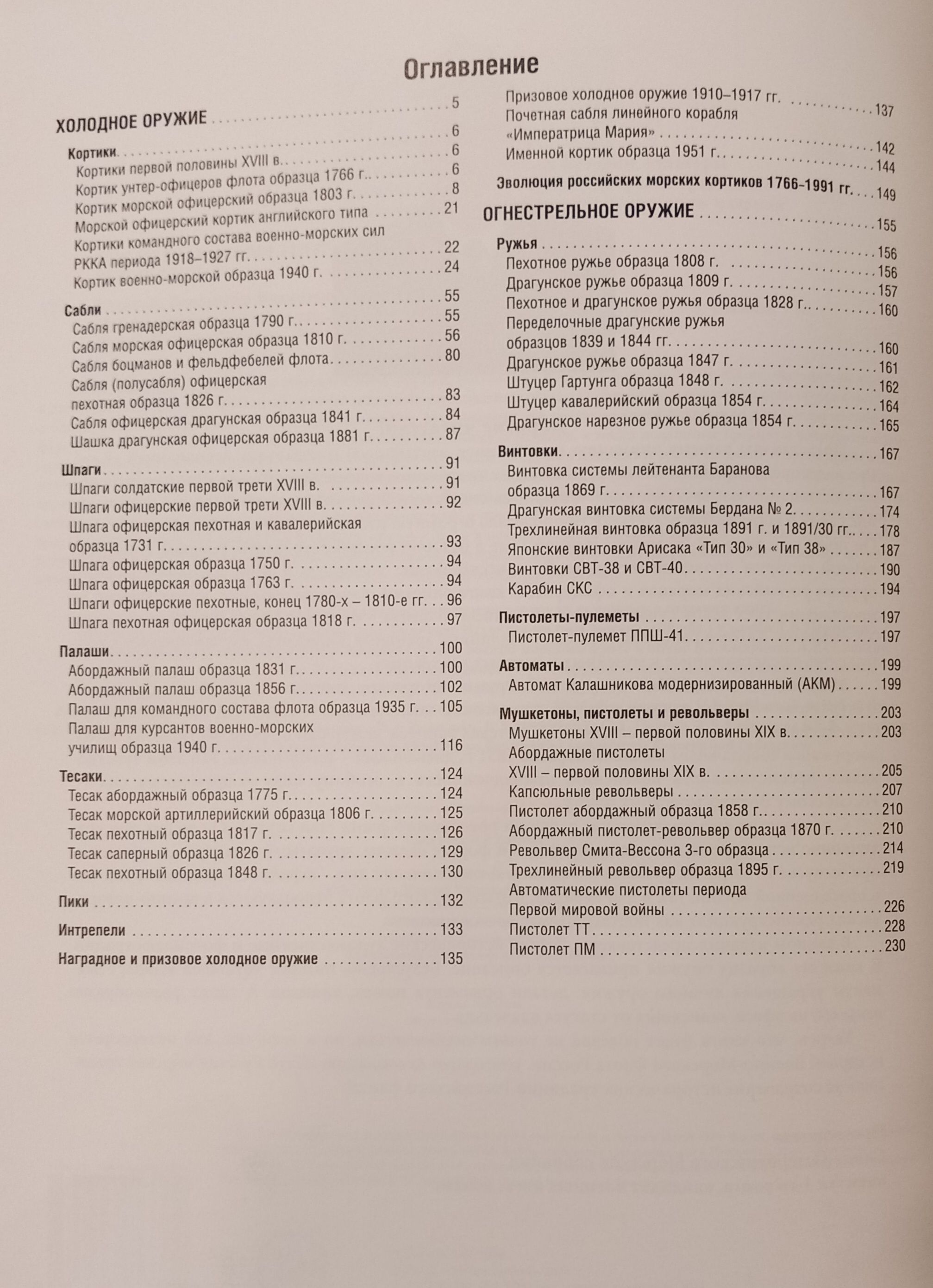 Наряду с личным оружием моряков в книге кратко рассказано о предметах абордажного вооружения, до настоящего времени крайне мало описанного в литературе. Отдельно описаны образцы наградного и призового оружия. Особое внимание уделено морским кортикам, которые с начала XIX столетия и до нашего времени были и остаются одним из символов флота.