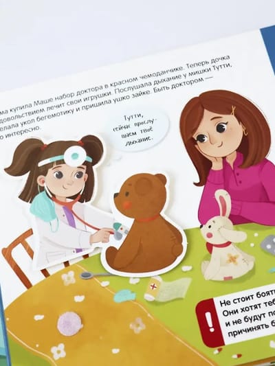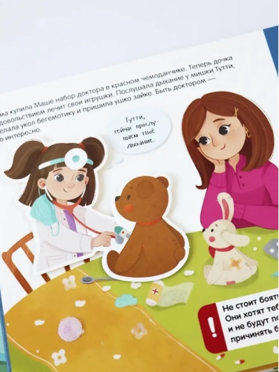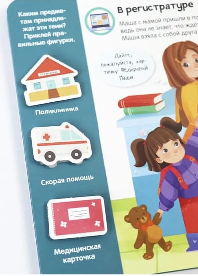 На страницах книги «У врача» ребёнок вместе с девочкой Машей познакомится с окулистом, отоларингологом и хирургом, выяснит, как проходит приём у педиатра и стоматолога, и узнает, что врачи добрые и совсем не страшные. А ещё на каждом развороте малыша ждут развивающие задания. Книжка-игра для детей приходит в разобранном виде, поэтому вы сможете создать собственную интересную книгу. Содержит 12 красочных страниц, научит сортировать и перекладывать предметы, сопоставлять пары и познавать окружающий мир. Развивашка с липучками будет одинаково интересна и мальчикам и девочкам.