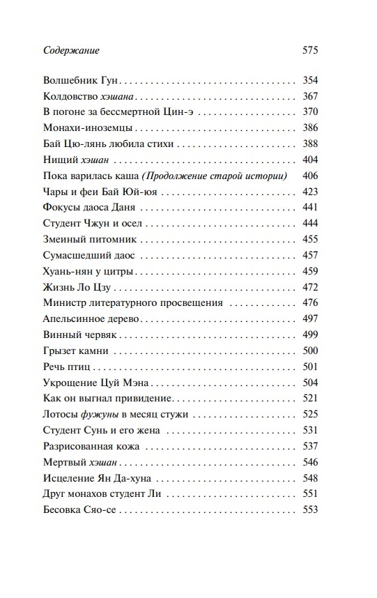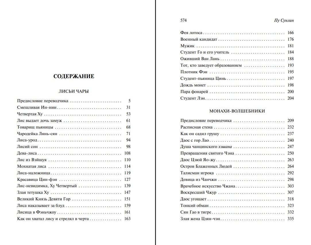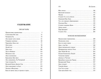 В издание вошло два сборника «Лисьи чары» и «Монахи-волшебники» в переводе видного филолога-китаиста Алексеева В. М., рассказывающие о мифических созданиях, которые периодически наведываются в мир людей и вмешиваются в их судьбы.