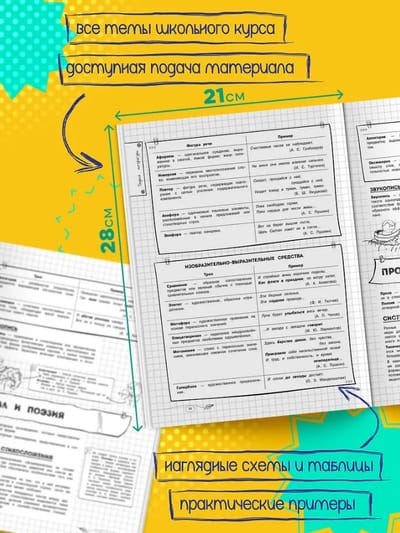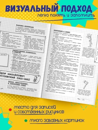 Благодаря наглядной подаче теории с примерами, схемами, а также забавными рисунками, текст становится доступным и интересным. Визуальный подход обеспечивает легкость восприятия и запоминания информации, ведь она оформлена в виде конспектов, словно ученик писал их сам. Всевозможные иллюстрации и места для собственных примеров и примечаний помогут сделать процесс обучения максимально простым и приятным! А при желании можно взять маркеры и сделать свой конспект еще более уникальным и персонализированным!
