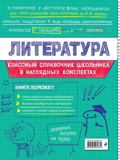 Справочник по литературе в наглядных конспектах для учеников 5-11 классов превращает изучение каждой темы в увлекательное и познавательное приключение! Книга поможет запоминать и повторять материал на протяжении всего школьного курса.