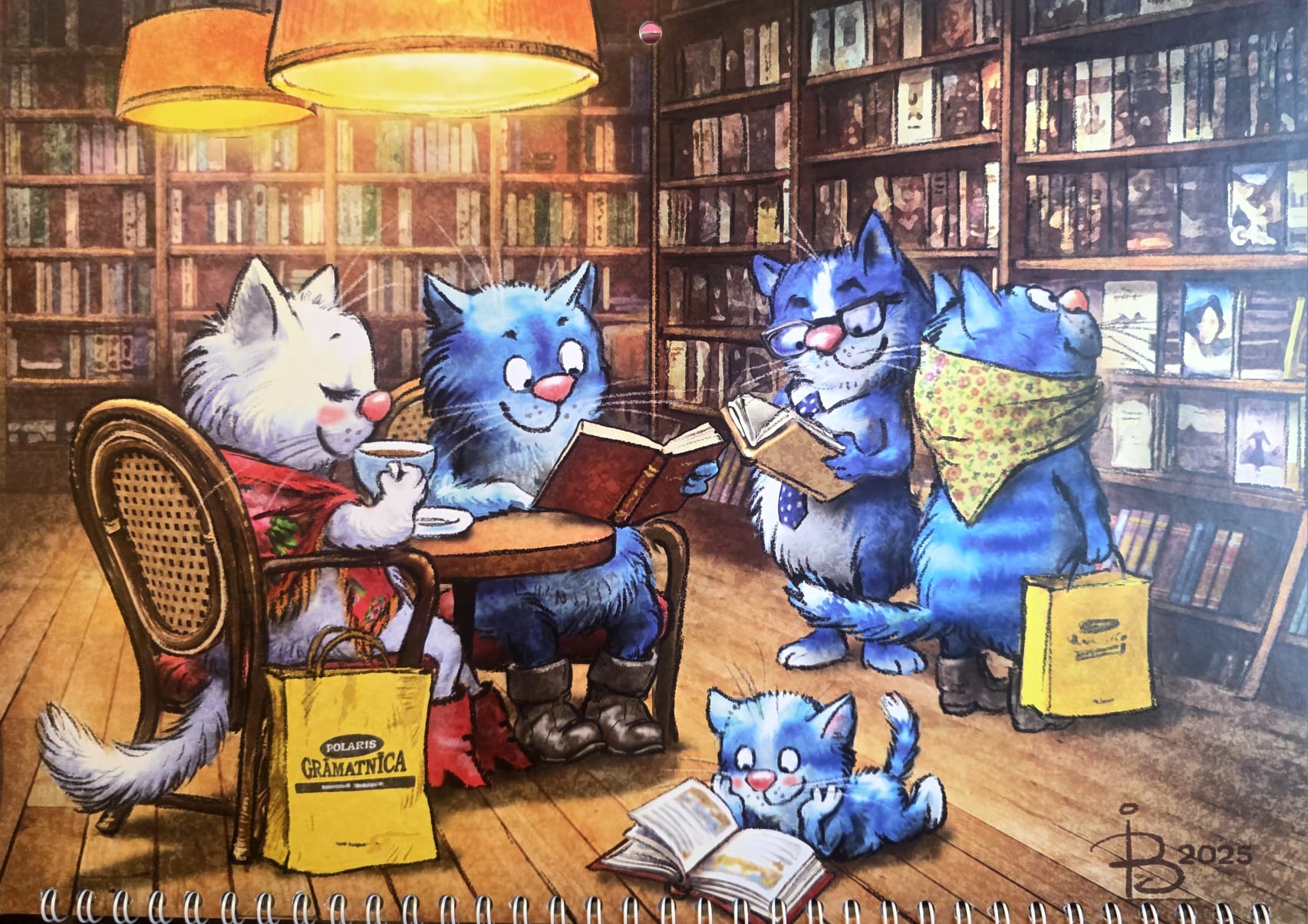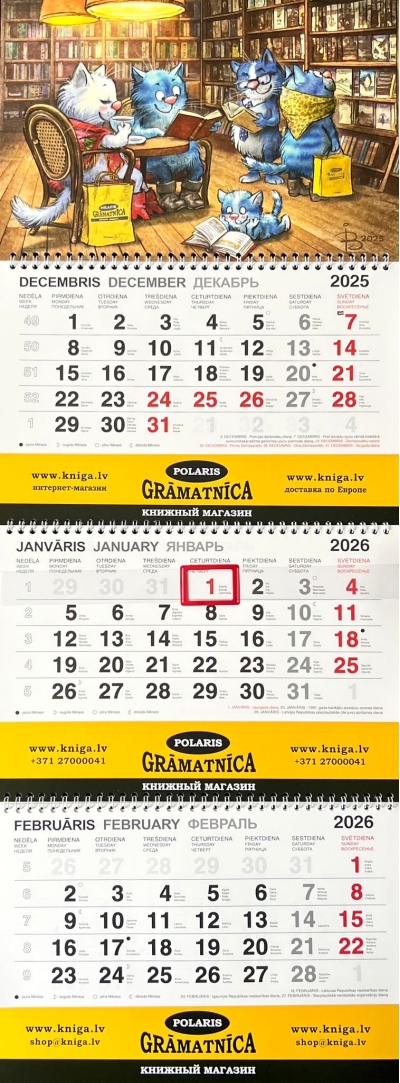 Синие коты в книжном кафе. Календарь Полярис настенный на 2026 год
