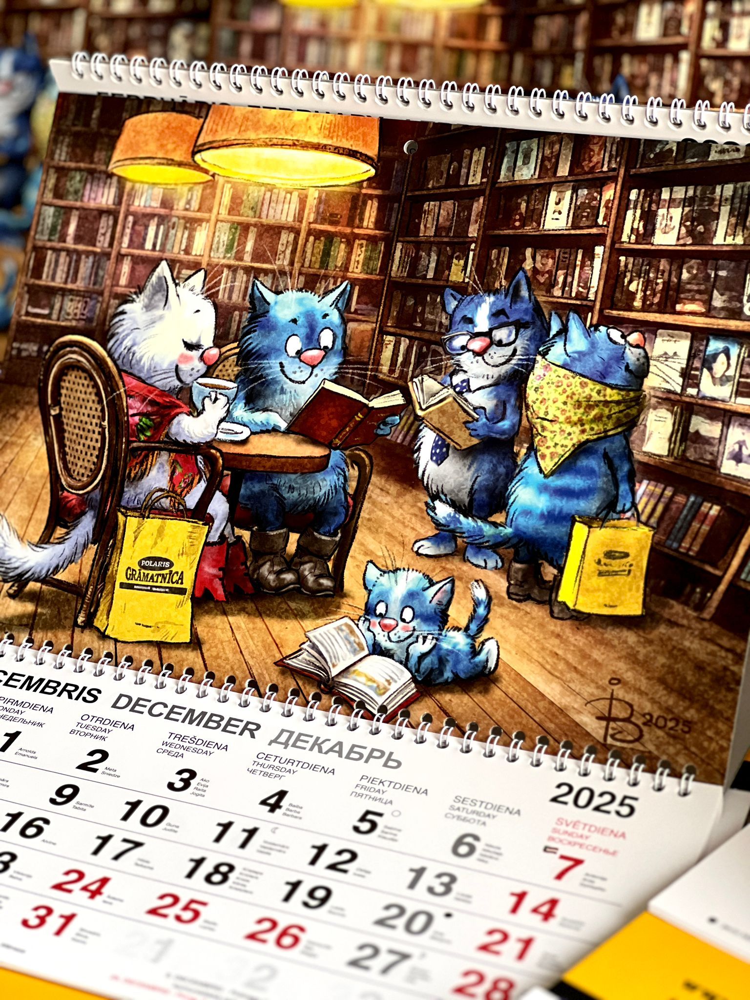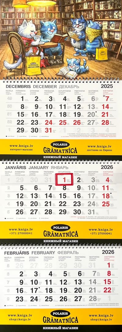 А в 2026 году календарь встречает атмосферой уюта и книг: Синие коты расположились в книжном кафе, читают, делятся историями и наслаждаются временем вместе. Настоящее вдохновение для всех, кто любит книги и теплые вечера в компании чтения!