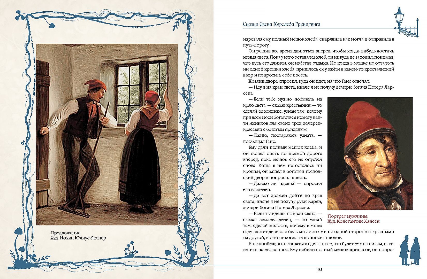 Дивную атмосферу сказок дополняют иллюстрации знаменитых датских художников — Ганса Тегнера, Расмуса Кристиансена, Вильгельма Педерсена, Йенса Юэля, Пауля Густава Фишера, Ганса Андерсена Брендекильде, Петера Мёрка Мёнстеда, Йохана Юлиуса Экснера, Лаурица Андерсена Ринга и многих других.