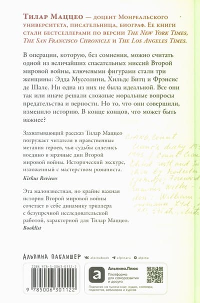 В своем документальном триллере Тилар Маццео по минутам восстанавливает этот драматичный эпизод Второй мировой, опираясь на архивные документы и свидетельства очевидцев. Это увлекательный шпионский роман и кинематографичная история о любви, риске и неотвратимости правосудия.