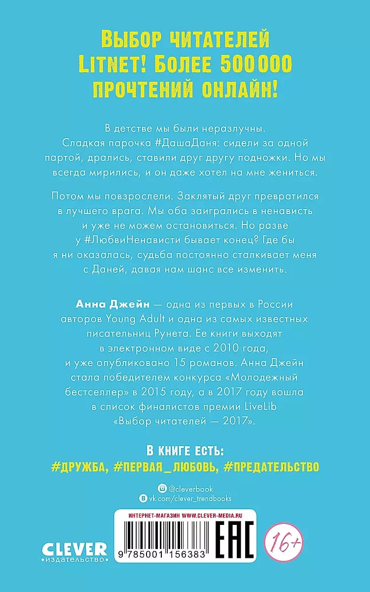 В детстве мы были неразлучны. Сладкая парочка #ДашаДаня сидели за одной партой, дрались, ставили друг другу подножки. Но мы всегда мирились, и он даже хотел на мне жениться. Потом мы повзрослели. Заклятый друг превратился в лучшего врага. Мы оба заигрались в ненависть и уже не можем остановиться. Но разве у #ЛюбвиНенависти бывает конец? Где бы я ни оказалась, судьба постоянно сталкивает меня с Даней, давая нам шанс все изменить.