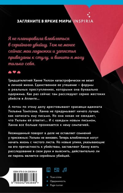 Я не планировала влюбляться в серийного убийцу. Тем не менее сейчас мои лодыжки и запястья привязаны к стулу, и винить я могу только себя.