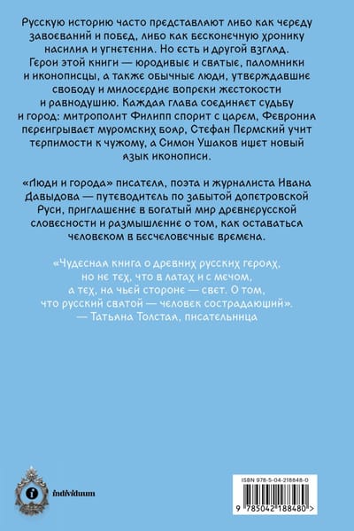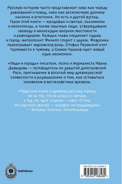 «Люди и города» писателя, поэта и журналиста Ивана Давыдова — путеводитель по забытой допетровской Руси, приглашение в богатый мир древнерусской словесности и размышление о том, как оставаться человеком в бесчеловечные времена.