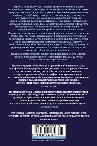 Звездный флот Земли далекогобудущего совершает дальний полет в глубины Вселенной. Сверхсветовые корабли,«пожирающие» пространство и превращающие его в энергию. Цивилизации галактови разрушителей, столкнувшиеся в звездной войне. Странные формы разума. Возможностьуправлять временем... Роман Сергея Снегова, написанный в редком для советскойэпохи жанре «космической оперы», по праву относится к лучшим произведениямотечественной фантастики, прошедшим проверку временем, читаемым иперечитываемым сегодня. Судьба книги, несмотря на ее неоспоримый успех,складывалась непросто. Роман отвергли четыре издательства, уж слишком резкоотступал он от привычных канонов. А уже принятый к печати, он подвергсяжесткой, порой бессмысленной вивисекции: многочисленные, зачастуюнеобоснованные купюры, бесконечные придирки издателей, своевольныередакторские вставки, внесенные без ведома автора, — и в результате всегоэтого сбои и нестыковки в сюжете... Полный, восстановленный вариант звезднойэпопеи Сергея Снегова, который и предлагается в этой книге, вышел только в2010 году, через 16 лет после смерти писателя.