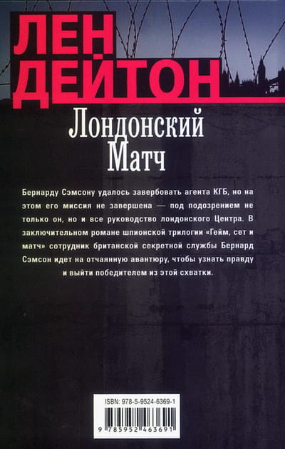 Бернарду Сэмсону удалось завербовать агента КГБ, но на этом его миссия не завершена — под подозрением не только он, но и все руководство лондонского Центра. В заключительном романе шпионской трилогии «Гейм, сети матч» сотрудник британской секретной службы Бернард Сэмсон идет на отчаянную авантюру, чтобы узнать правду и выйти победителем из этой схватки.