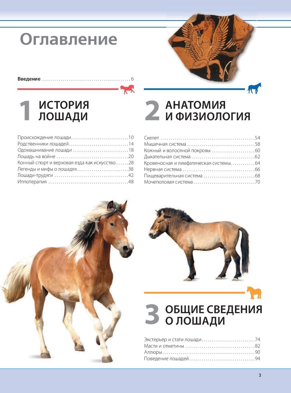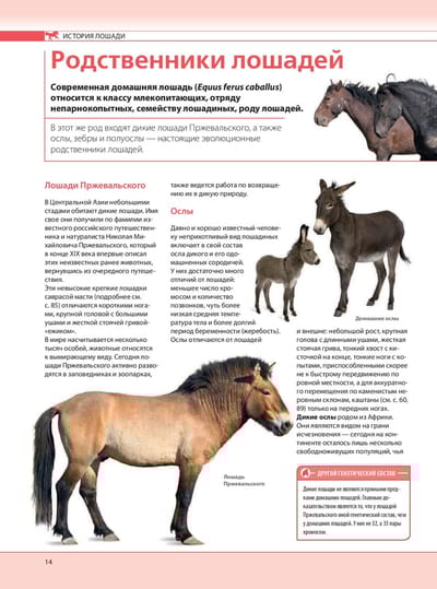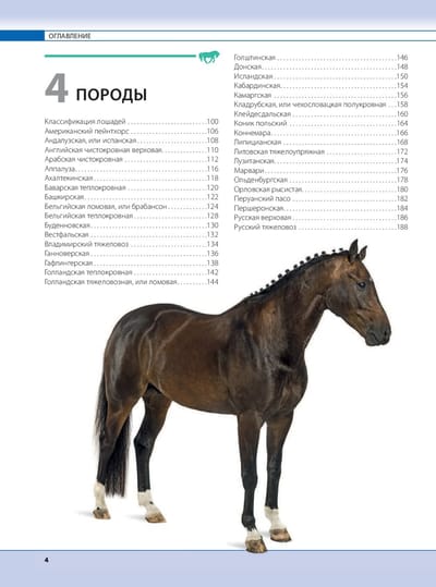 человека. Вы найдете информацию о предках и родственниках этих животных; выясните, чем отличаются большие лошади и маленькие пони; почерпнете некоторые любопытные факты о физиологии и анатомии лошади; научитесь разбираться в породах, статях и мастях; получите полезные сведения о домашнем содержании лошадей, уходе за ними и разведении; познакомитесь с основными видами конного спорта и оцените полезность иппотерапии.