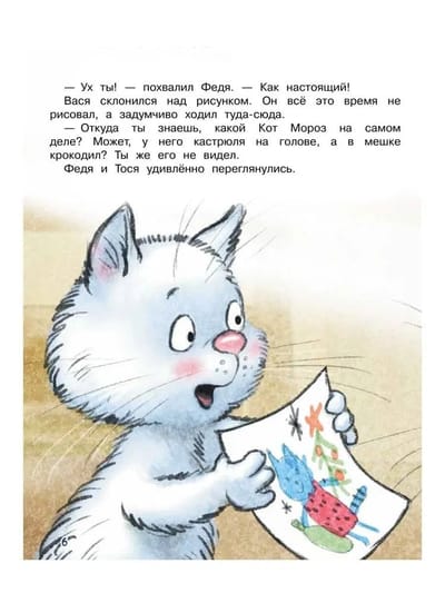 Наверняка вы знаете деревню Котофеевку, где живут самые обыкновенные... синие коты! Красавица Мурка с мужем Степаном, директором колбасного завода, почтальон Василий (кто ещё так сыграет на гармошке!) и даже Валерьяновна с окраины. Однажды под Новый год трое котят решили во что бы то ни стало посмотреть на Кота Мороза - и устроили хитроумную ловушку. А что из этого вышло, вы узнаете, прочитав эту новогоднюю историю! Первая книга Рины Зенюк понравится не только детям, но и взрослым. Это издание – отличный подарок для всей семьи накануне зимних праздников, чтобы вместе окунуться в новогоднее настроение!