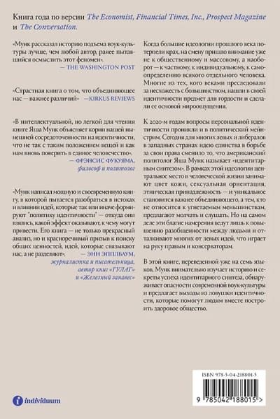 В этой книге, переведенной уже на семь языков, Мунк внимательно изучает историю и секреты успеха идентитарного синтеза, обнаруживает опасности современной воук-культуры и предлагает выходы из ловушки идентичности, которые помогут людям вместе построить здоровое общество.