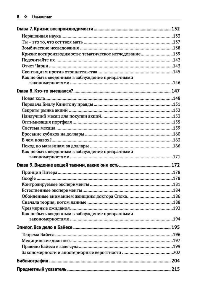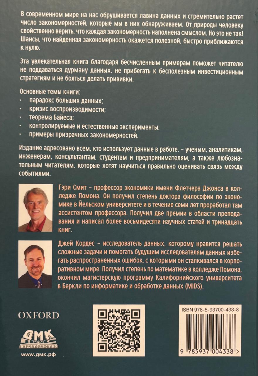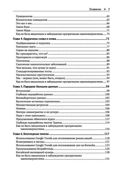 В современном мире на нас обрушивается лавина данных и стремительно растет число закономерностей, которые мы в них обнаруживаем. От природы человеку свойственно верить, что каждая закономерность наполнена смыслом. Но это не так! Шансы, что найденная закономерность окажется полезной, быстро приближаются к нулю. Эта увлекательная книга благодаря бесчисленным примерам поможет читателю не поддаваться дурману данных, не прибегать к бесполезным инвестиционным стратегиям и не бояться делать прививки.