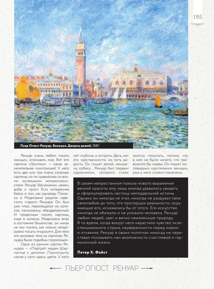Благодаря книге «Лучшие картины в мировой истории» вы сможете ближе познакомиться с жизнью и работами ярчайших представителей изобразительного искусства эпох Средневековья, Возрождения, Просвещения и XIX века. Блестящий искусствовед и лектор проведет вас по лабиринту загадок и символов, сокрытых в живописных полотнах таких мастеров прошлого, как Сандро Боттичелли, Иероним Босх, Леонардо да Винчи, Альбрехт Дюрер, Рафаэль Санти, Эль Греко, Диего Веласкес, Эдуард Мане. Материал в книге расположен таким образом, чтобы вам было удобно рассматривать отдельные фрагменты картин и тут же возвращаться к комментариям Паолы Волковой, всегда расположенным рядом с предметом исследования.