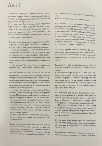 Эта история о трагической судьбе хрупкой и нежной, но сильной духом юной японской девушки и её любви к жесткому американскому офицеру стала одной из самых популярных опер Джакомо Пуччини и основана на реальных событиях, случившихся в Японии конца XIX века. Великая любовная драма о столкновении искреннего чувства с бессердечием и ложью этого мира буквально заново оживает на страницах этой изумительной подарочной книги в иллюстрациях всемирно известного художника Бенжамена Лакомба.