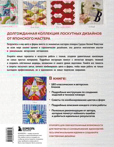 Вдохновляйтесь, экспериментируйте, создавайте! Пусть каждый проект станет отражением вашей индивидуальности, а работа с тканью — источником радости. Откройте для себя все грани искусства пэчворка вместе с Судзуко Косеки!