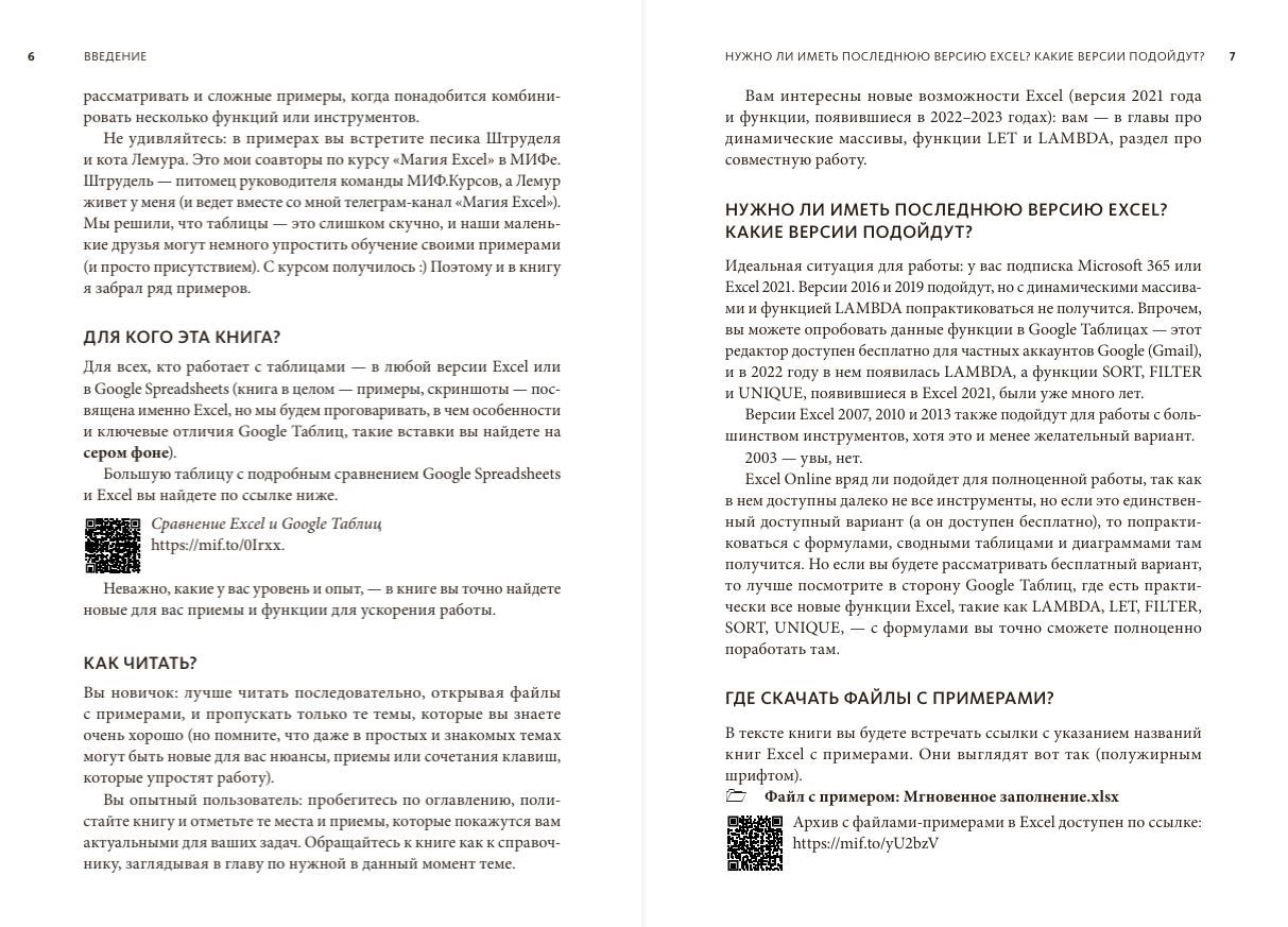 В качестве примеров даны не только скриншоты из настоящей рабочей практики с пометками и комментариями. В книге есть ссылка на файлы примеров — рабочие книги Excel, где можно практиковаться самостоятельно и работать с формулами и таблицами из книги.