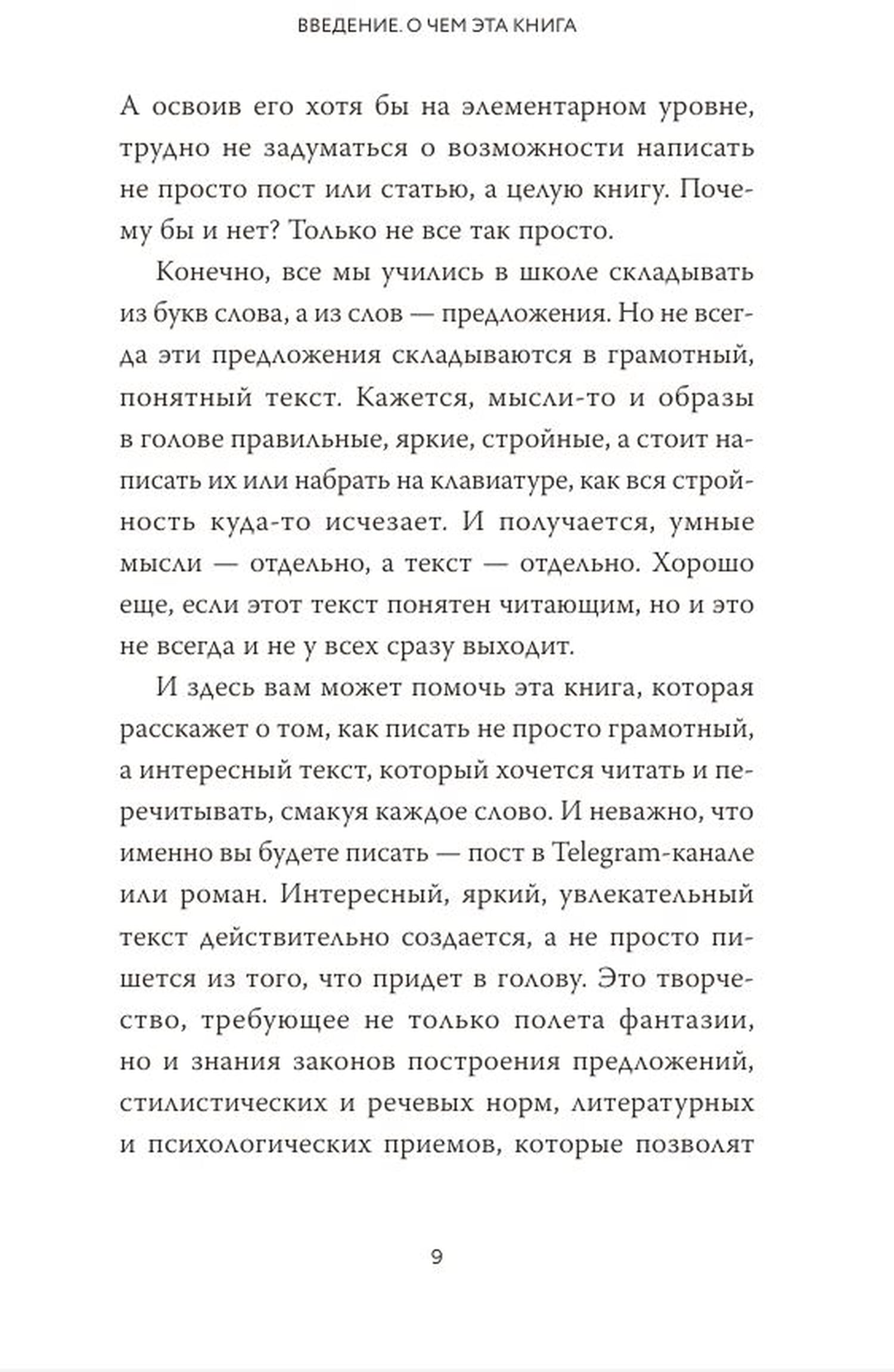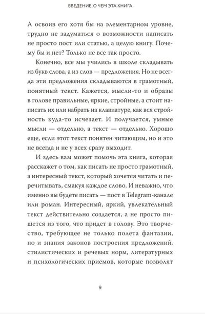 Автор расскажет о том, как писать не просто грамотный, но и интересный текст, который хочется читать и перечитывать, смакуя каждое слово. И неважно, что вы будете писать — пост в соцсети, отзыв на книгу или собственный роман. Интересный и яркий текст действительно создается, а не просто пишется, как придет в голову. Настоящее писательское мастерство требует не только полета фантазии, но и знания законов построения предложений, стилистических и речевых норм, литературных и психологических приемов. Обрести такие знания о магии текста поможет вам эта книга.