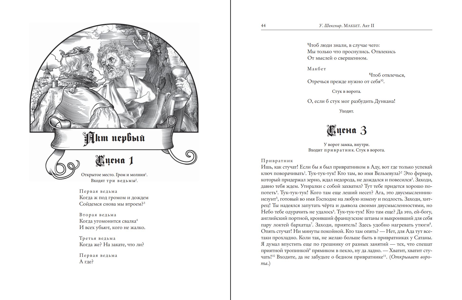Научный аппарат издания включает три статьи. А. Н. Горбунов анализирует исторический контекст трагедии: Пороховой заговор, религиозные конфликты, «охоту на ведьм», интерес Иакова I к демонологии и источники сюжета. Н. Э. Микеладзе исследует происхождение сцены «стука» в ворота, прослеживая её истоки от Евангелий и Данте до английских мистерий. Е. А. Первушина подробно рассматривает русскую рецепцию «Макбета» за три столетия. Обширный комментарий В. С. Макарова раскрывает многослойность пьесы.