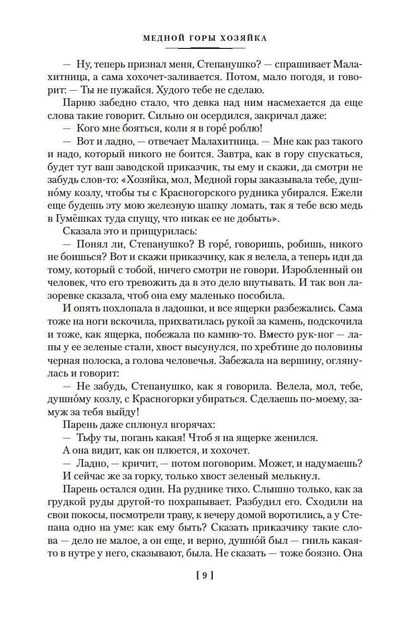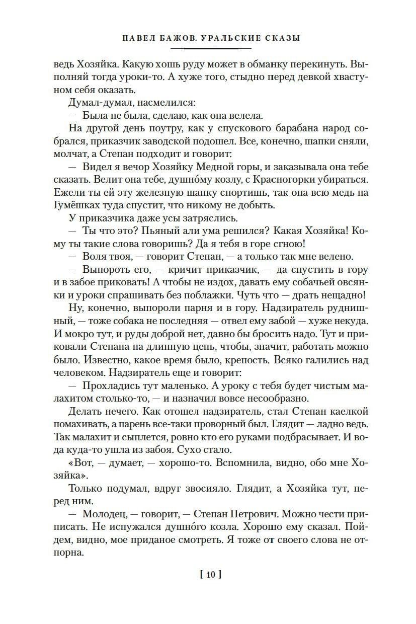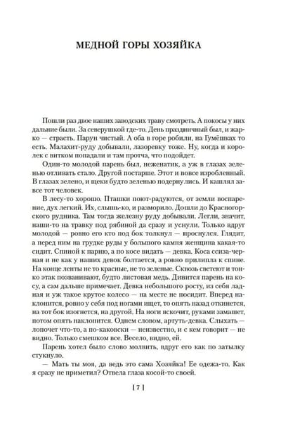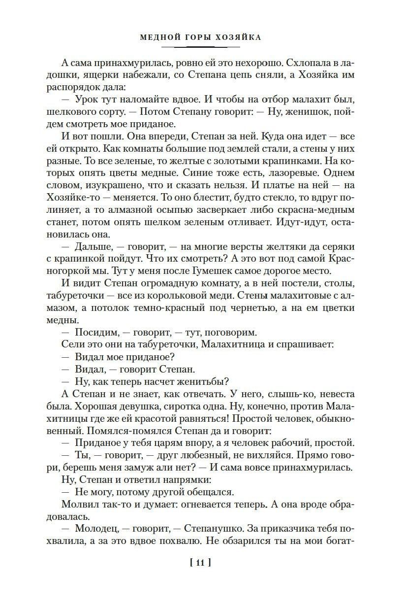 В издание вошло полное собрание уральских сказов П. Бажова: «Каменный цветок», «Малахитовая шкатулка», «Медной горы хозяйка», «Серебряное копытце» и другие, а также автобиографические повести «Зеленая кобылка», «Дальнее — близкое» и сборник «Уральских былей», в основу которых легли воспоминания об уральской жизни и детских годах писателя.