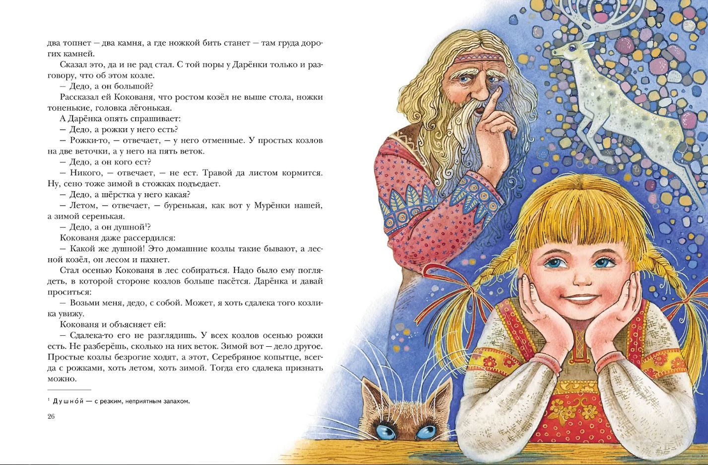 Яркие и самобытные уральские сказы Павла Бажова. Их герои — честные и отважные люди, которые попадают в необычные сказочные обстоятельства. Чего только не встретится им на пути! То Степан повстречает Хозяйку Медной горы, и превратится она в ящерку юркую, то мальчики Ланко и Лейко попытаются обхитрить Голубую змейку, да только злые помыслы к хорошему не приводят, то сиротка Дарёнка с Кокованей увидят козлика с серебряным копытцем, что оставляет после себя драгоценные хризолиты. Произведения хранят в себе особую атмосферу уральских земель, где суровая действительность уклада жизни простых людей пронизана сказочным духом и неуловимой красотой.