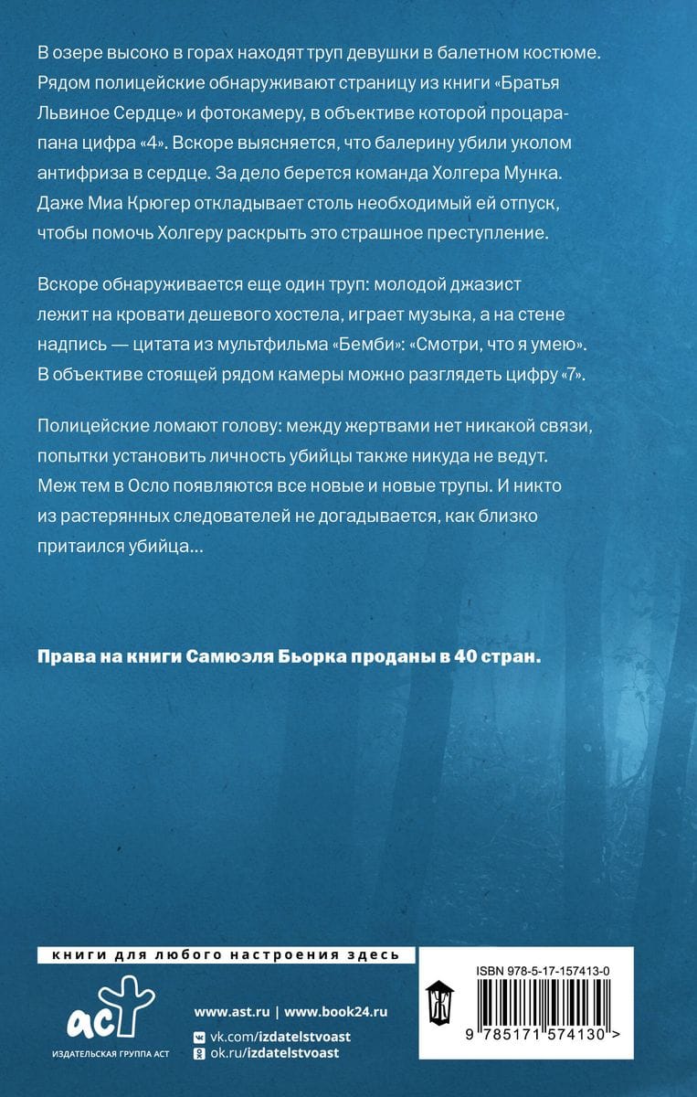 В озере высоко в горах находят труп девушки в балетном костюме. Рядом полицейские обнаруживают страницу из книги «Братья Львиное Сердце» и фотокамеру, в объективе которой процарапана цифра «4». Вскоре выясняется, что балерину убили уколом антифриза в сердце. За дело берется команда Холгера Мунка. Даже Миа Крюгер откладывает столь необходимый ей отпуск, чтобы помочь Холгеру раскрыть это страшное преступление.