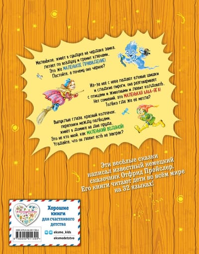 Все знаменитые сказки известного немецкого писателя Отфрида Пройслера про фантастические существа, которых объединяет одно-- они все маленькие. Не просто маленького роста, а прямо малыши. Поэтому и шалости у них, и мысли, и приключения -- совершенно детские. Маленький Водяной в красном колпачке живет на дне мельничного пруда, Маленькое Привидение-- в старом замке, а Маленькая Баба-Яга-- в лесу, где она готовится к сдаче экзамена на взрослую ведьму. Все они станут вашими друзьями, если вы не испугаетесь нырнуть в воду, пролезть сквозь подземный лабиринт и полетать на метле...