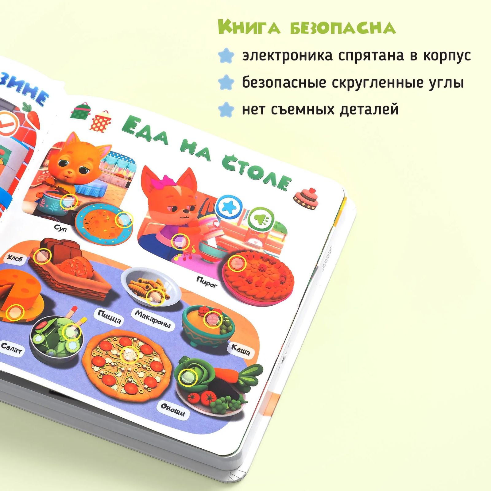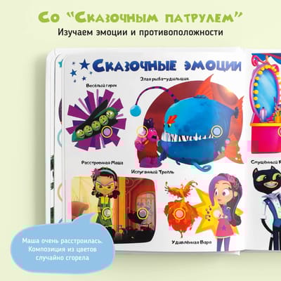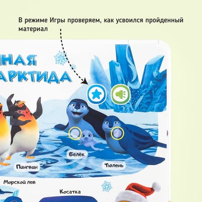 Вместе с известными героями мультфильмов, такими как «Лео и Тиг», «Кошечки-Собачки», «Сказочный патруль» и «Аркадий Паровозов», ребенок познакомится с разнообразными животными из различных природных зон, узнает о их формах и цветах. В процессе обучения малыш научится считать до 10, а также познакомится с основными эмоциями и противоположностями. Кроме того, в книге рассматриваются продукты, которые можно приобрести в магазине, и блюда, которые из них готовят, а также происхождение продуктов и их состав. Особое внимание уделяется вопросам безопасности как дома, так и на улице. Книга сама задает вопросы и проверяет правильность ответов, что способствует активному участию ребенка в обучении и закреплению полученных знаний.